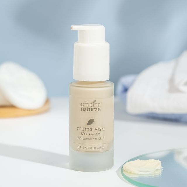 Modo d’uso: applica la crema senza profumo su viso e collo. Poi massaggiala delicatamente con movimenti circolari, fino al completo assorbimento. Per garantirti un’azione idratante e protettiva continuativa, ti consiglio di usare la crema due volte al giorno, al mattino e alla sera, preceduta dall’applicazione del Siero Viso Pelle Sensibile.